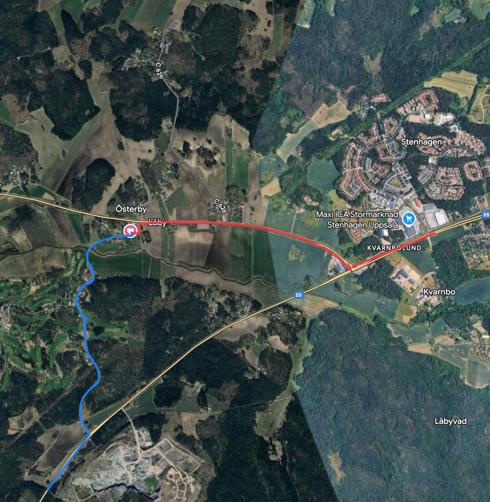 Kommer du från Enköpingshållet på väg 55 kan du svänga mot Läby/Uppsala GK och köra en mindre väg till katthemmet.